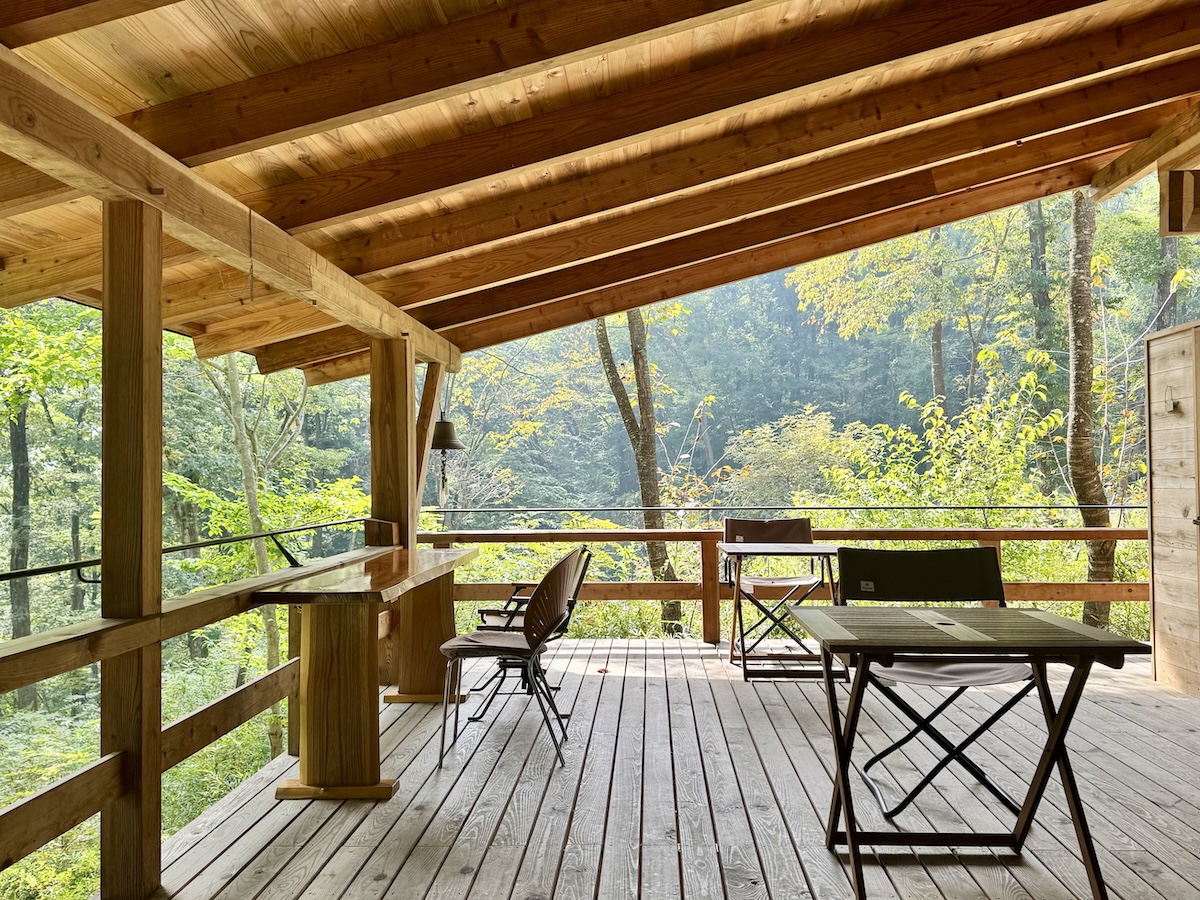 そうなんですよ、「時間」なんです。8MATOの森に浮かぶテラスで仕事をしていると、あっという間に薄暗くなって、「もう?」と思うようになりました。日が落ち始めると寒くもなりました。ついこの間までは、いつまでも明るく、寒くもならなかったのに・・・そうやって、身体で時間の変化を感じることができるのも8MATOの醍醐味かもしれません。