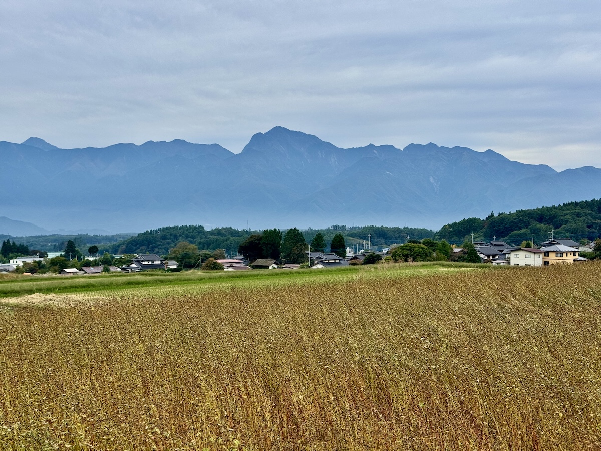 蕎麦の傍目の向こうに見える南アルプスの山々も、悪くありませんからね。