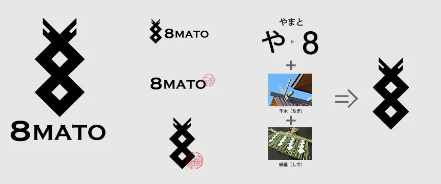 8MATO のロゴは数字の「8」、神社の屋根の千木(ちぎ)と神社の聖域であることを示す紙垂(しで)をモチーフにデザインしたものです。