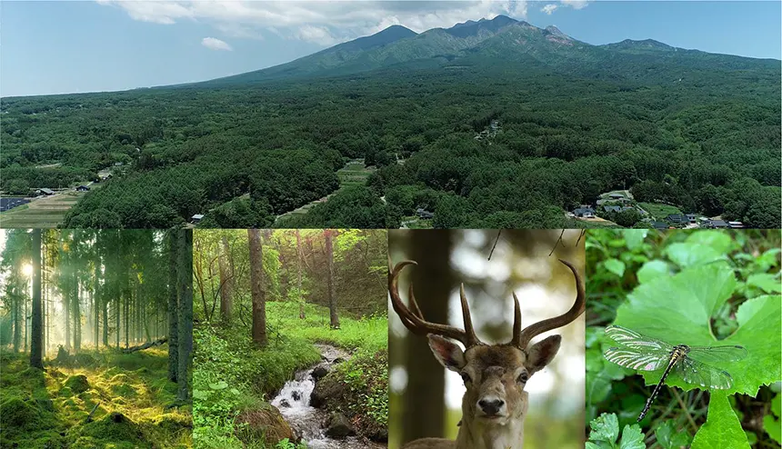 そこでは富士山や八ヶ岳の山並みをのぞむ眺望と四季折々の美しい自然が歓迎してくれます。豊かなまま残された自然には野生の鹿やキツネ、様々な野鳥が生息し、すぐ近くには涼やかな清流が木々の間を縫うように流れています。